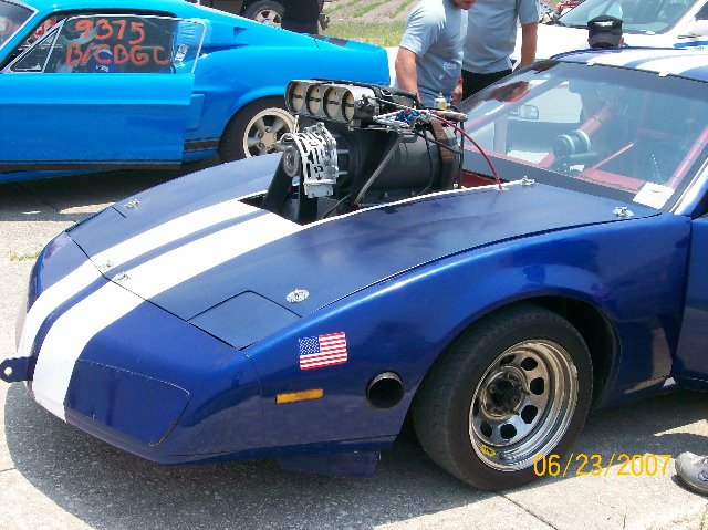 Here's a better shot of the entire car, supercharger and all. Even with the car showing -- it is pretty big, hey? |